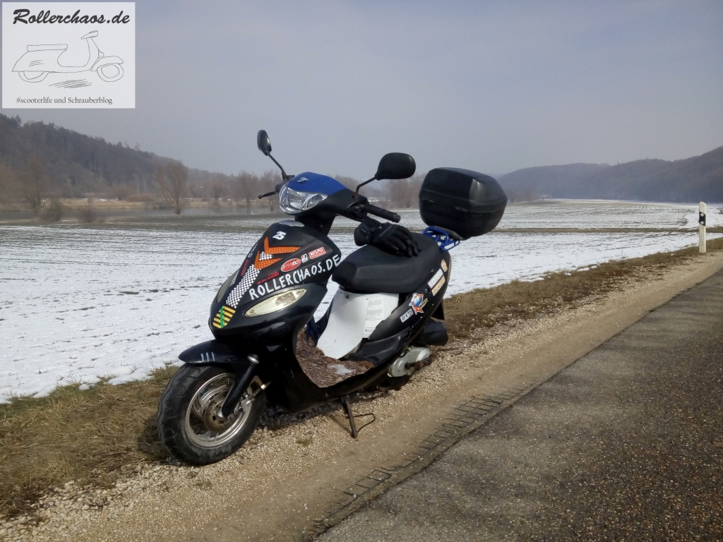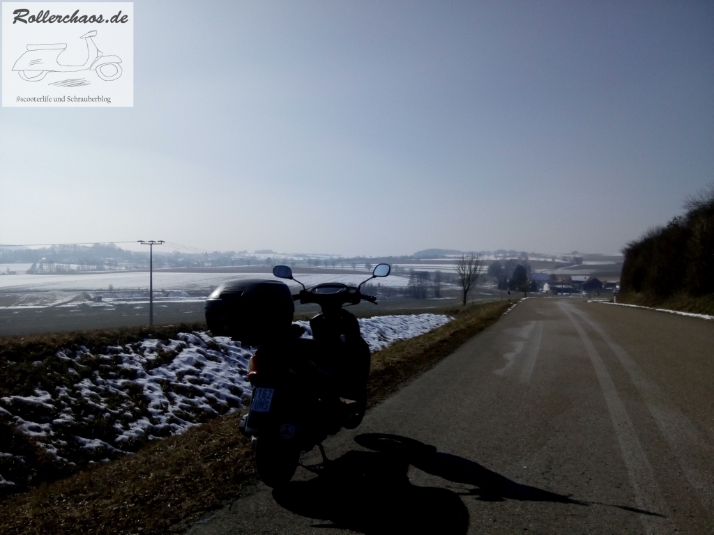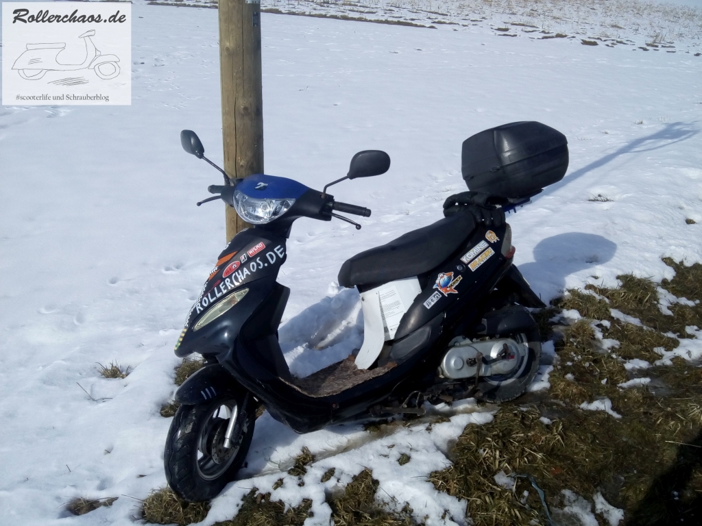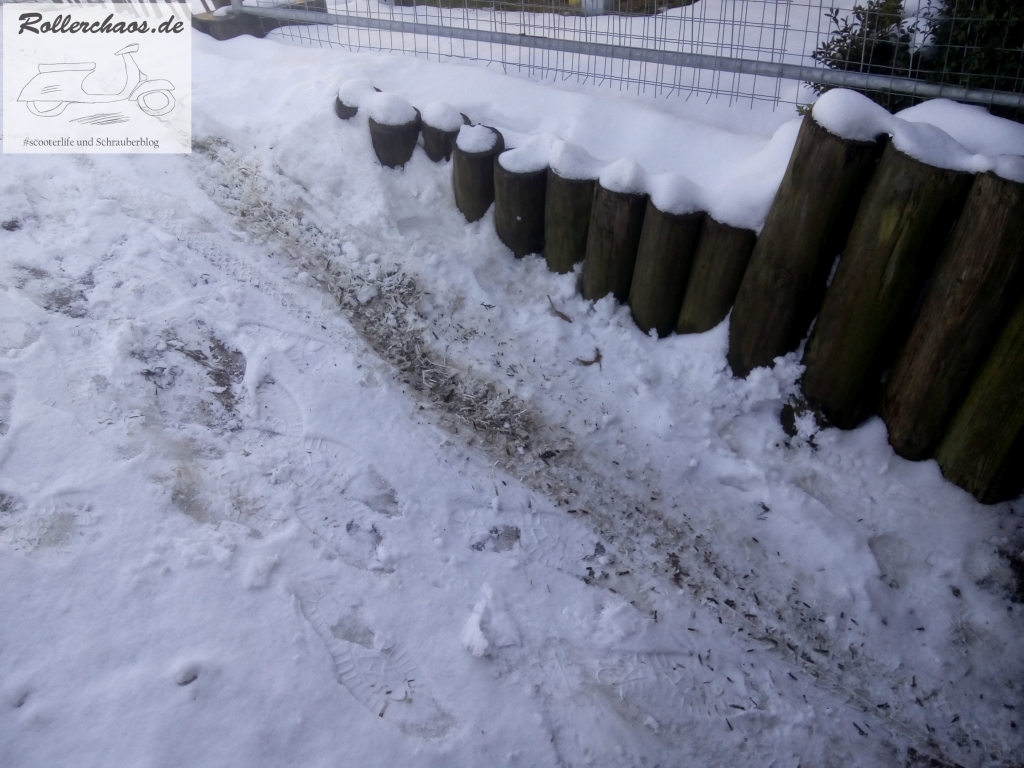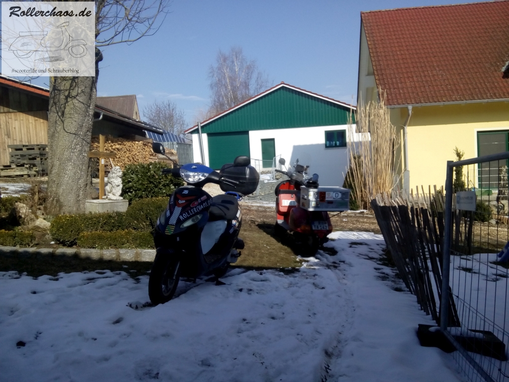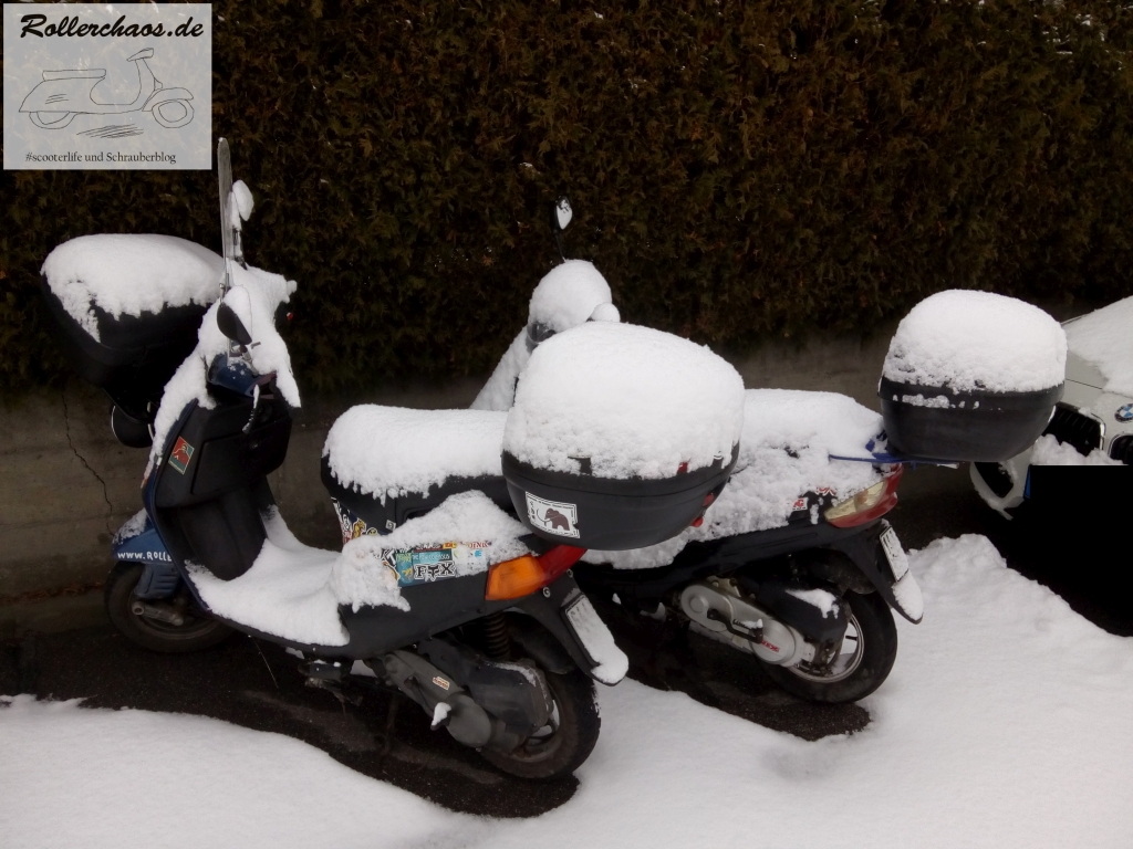 Grundsätzlich stört mich Schnee beim Rollerfahren nicht, aber auf dem Chinaroller sind Sommerreifen drauf, da wäre diese Fahrt weder legal nich verantwortbar gewesen.
