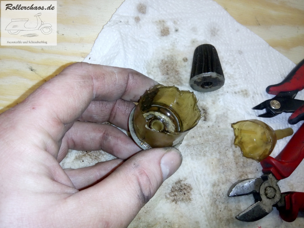 Tatsächlich war die Dichtung total verquollen und an einer Stelle undicht geworden. Da muss es dann siffen.
