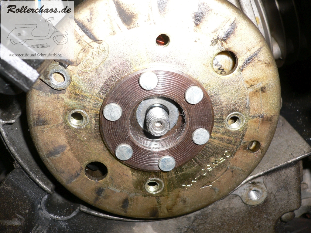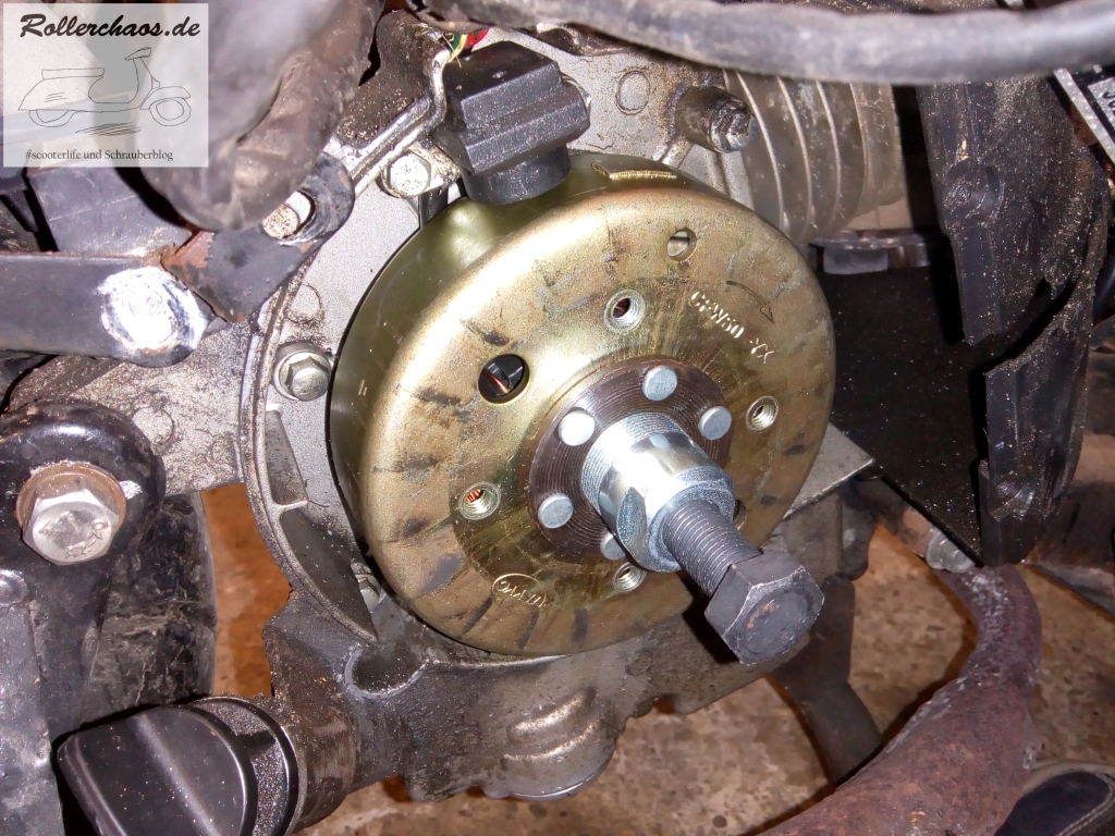 Erster Schritt ist also das Polrad freizulegen und das Lüfterrad zu entfernen. Anschließend lässt sich die Polradmutter öffnen und das Polrad abziehen.