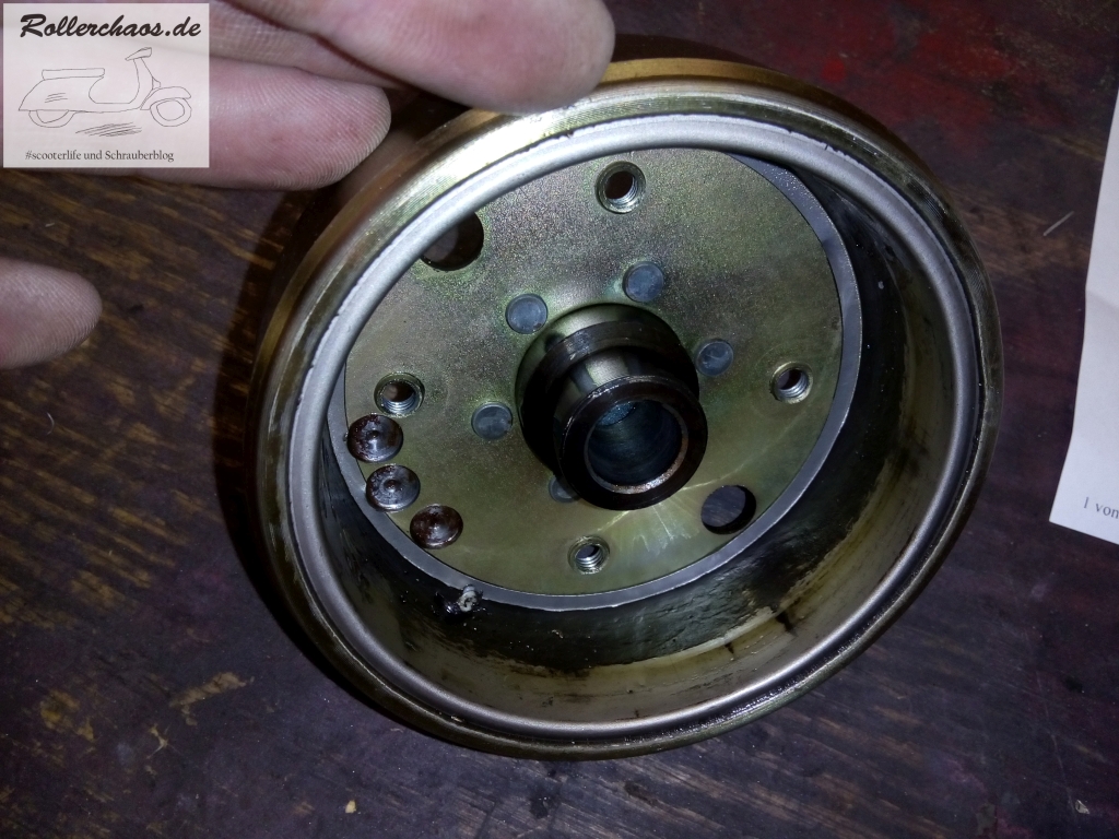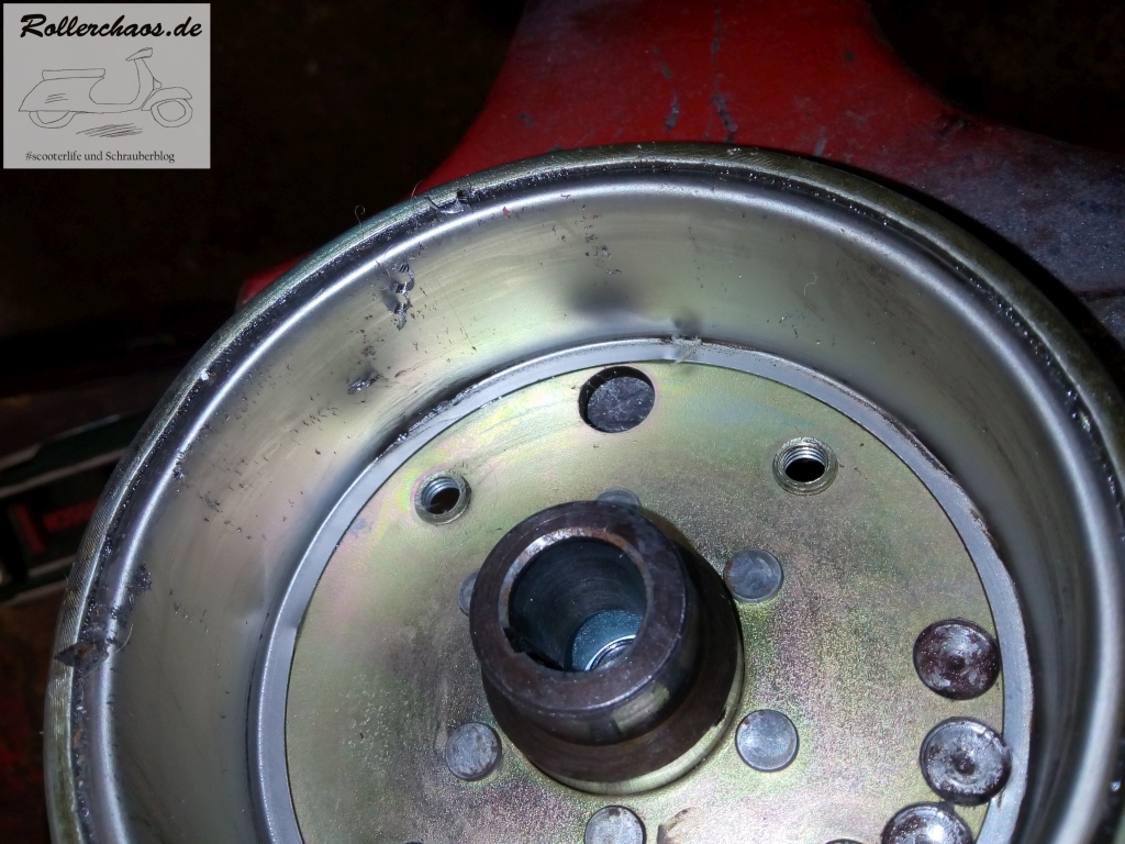 Die Innenseite des Polrad war nicht nur verölt sondern auch komplett mit Metallspänen überzogen.