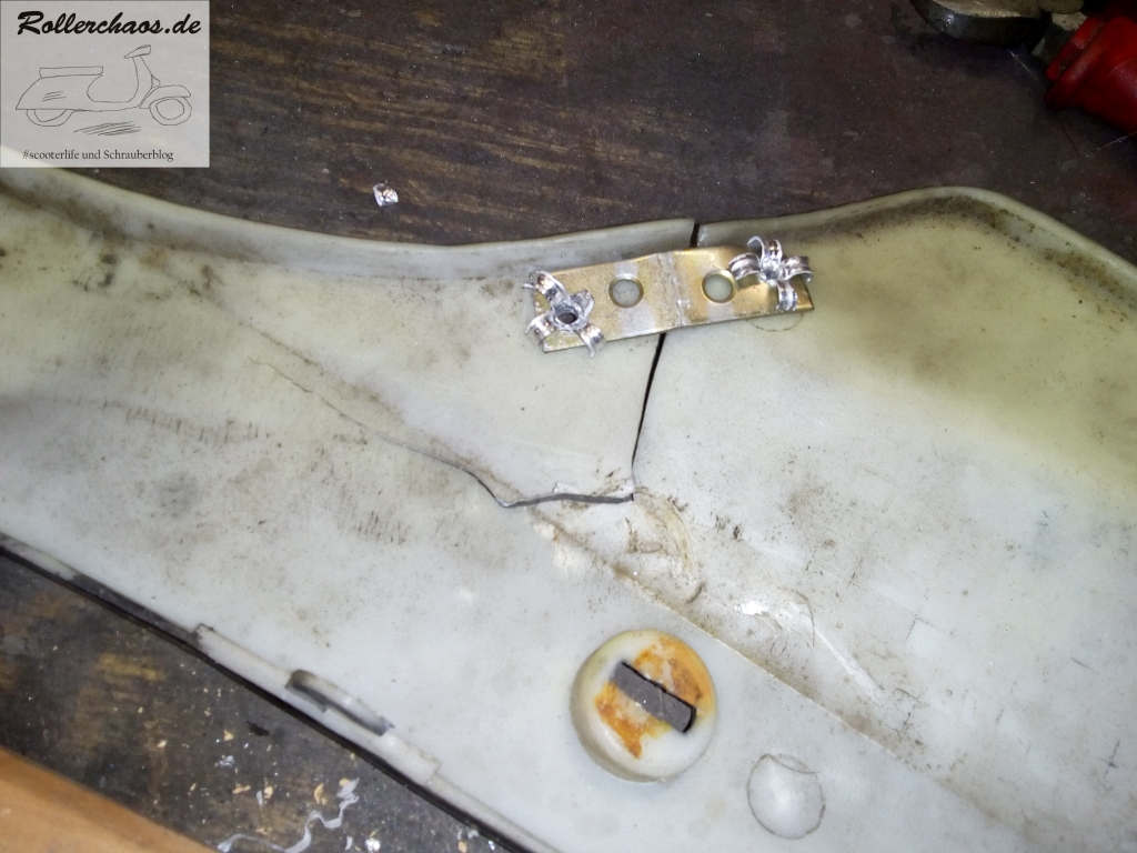 Das Ding wird einfach an den vier Befestigungsschrauben für das Trittbrett mit angeschraubt, die passenden Schrauben waren beim Alublech sogar dabei.