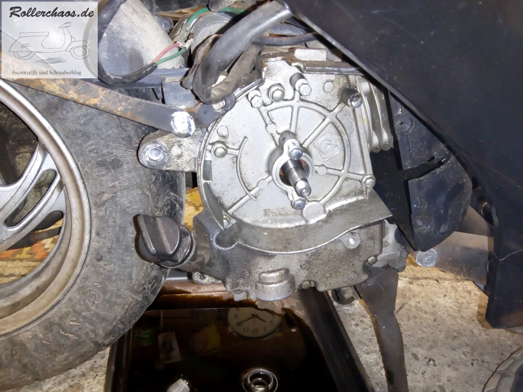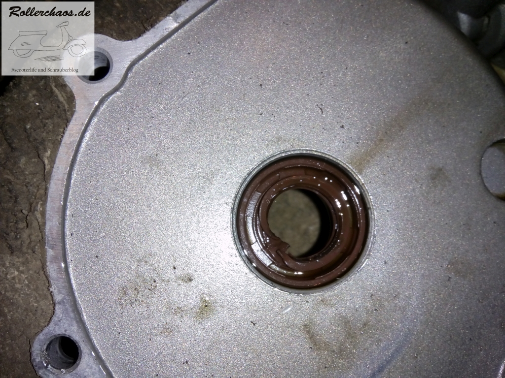 Der Zündfunken fehlt, weil die Erregerspule von den Spänen kurzgeschlossen und gekillt wurde, so führt das Eine zum Anderen. Wenn ich jetzt da einfach nur einen neuen Zündanker einbauen würde, dann liefe der Motor sicher wieder. Allerdings würde er halt weiterhin Öl verlieren was nicht gut ist. Aufgelöst hat es den SiRi vmtl. durch Alterung, der Roller stand ja lange, was den Dingern nicht bekommt, auf der Tour ist das Teil dann endgültig verreckt und die Schnurfeder hat es rausgezogen. Wahrscheinlich hat der Polradmagnet das Ding angezogen und so in den Rotor reingeschlürft und zerrieben.