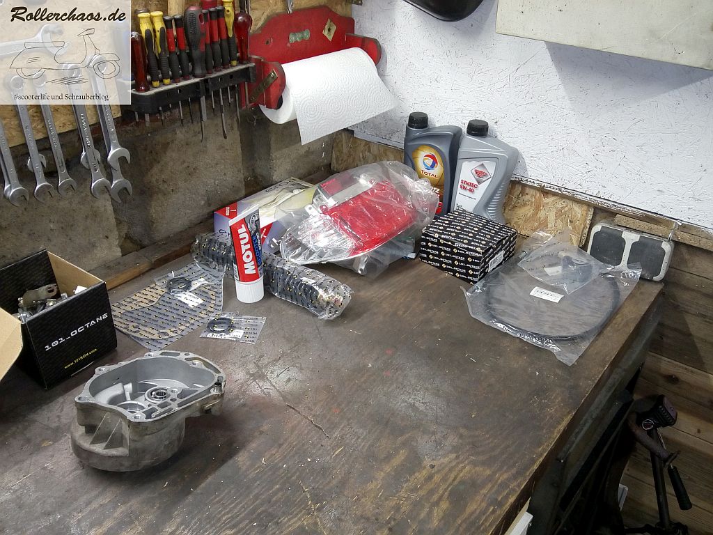 Als erstes bekam das Getriebe, das beim GY6-Motor ja eine eigene Gehäuseeinheit bildet, neue Wellendichtringe und eine neue Dichtung.