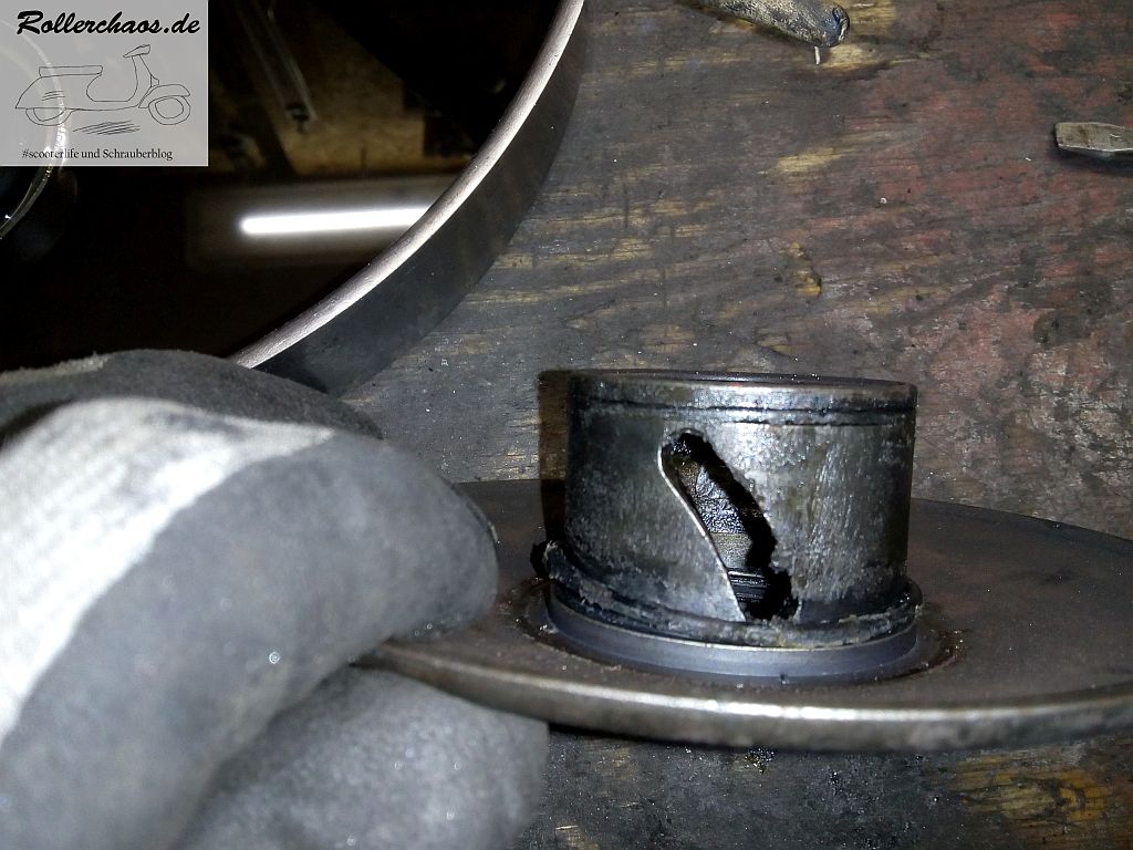 Interessant ist aber vor allem, dass es auch die Buntmetallbüchse aus dem Motorblock gezogen hatte. Zum Glück ist das ein Teil in Standardgröße, dass ich noch da hatte. Genau wie einen neuen Freiläufer.