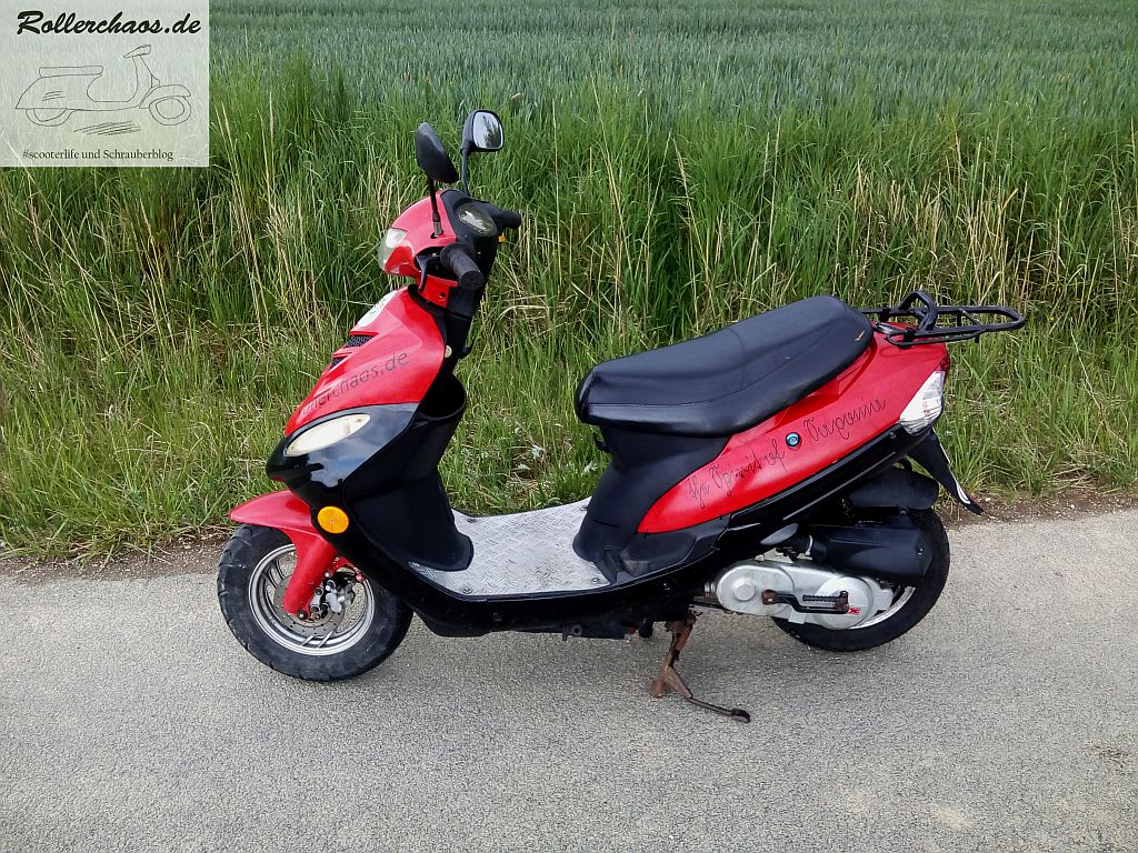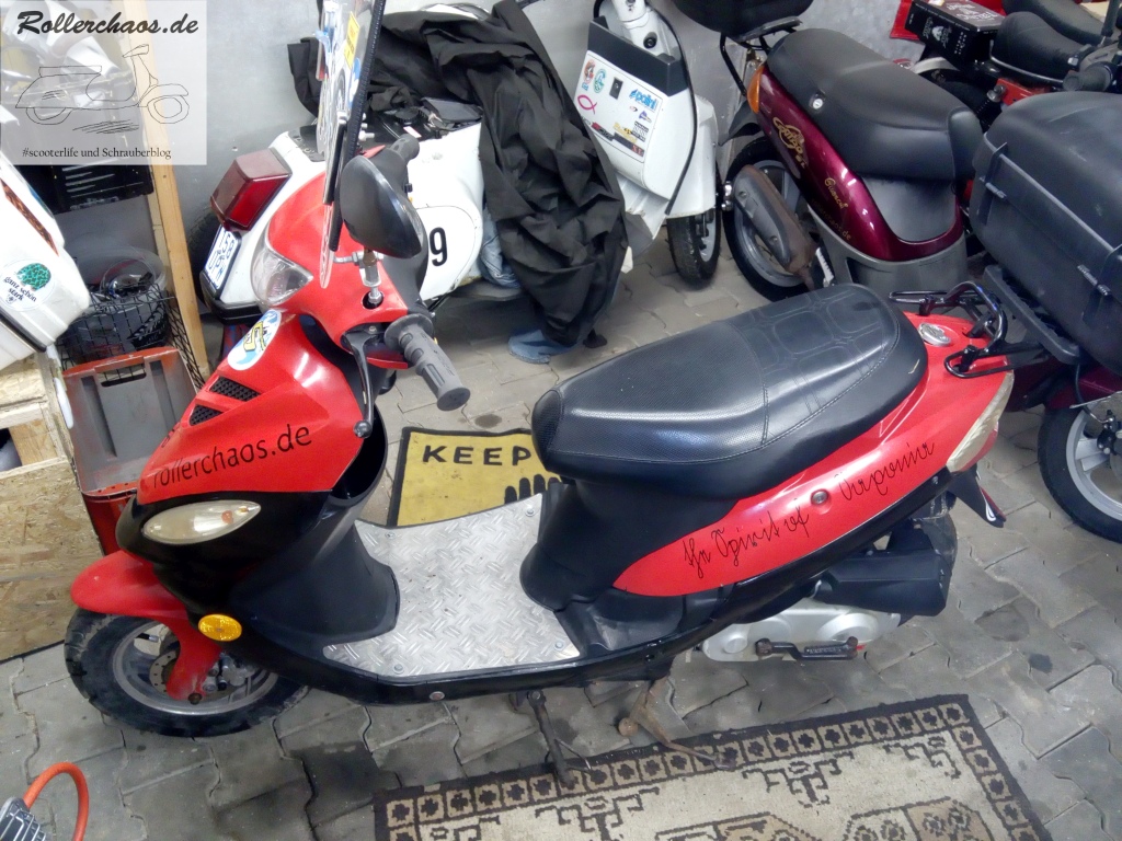 Ein lieber Bekannter war heute, in Begleitung seiner Freundin, bei mir. Hintergrund war, dass sie einen Roller sucht. Klein, leicht und billig sollte er sein und mein Chinakracher passte da natürlich genau ins Beuteschema.