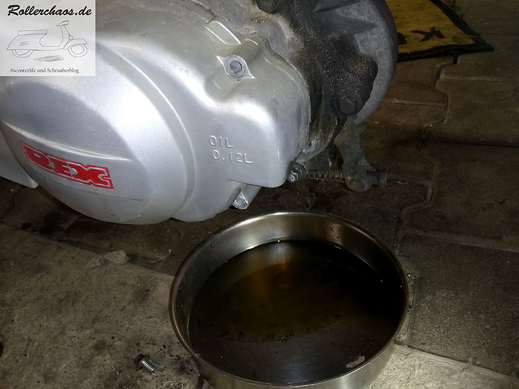 Unerwartet kam dann allerdings das nahezu völlige Fehlen des Getriebeöls. Allerdings hatte der völlig verölte Motorblock hier schon auf Ärger hingedeutet. Außerdem war damit auch die Ursache für den Mantel an Bremswirkung am Hinterrad gefunden.