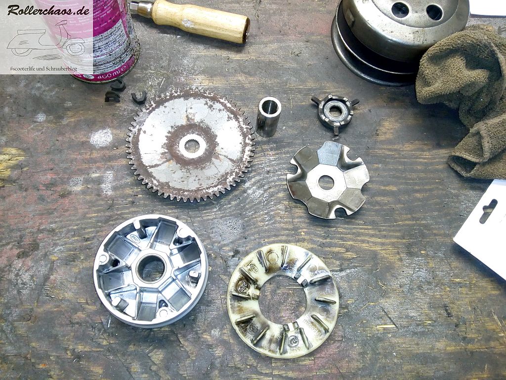 Antriebsseitig hat sich der kleine Chinese auch ganz gut gehalten, neue Fliehgewichte und ein neuer Antriebsriemen sind ja reine Routine.