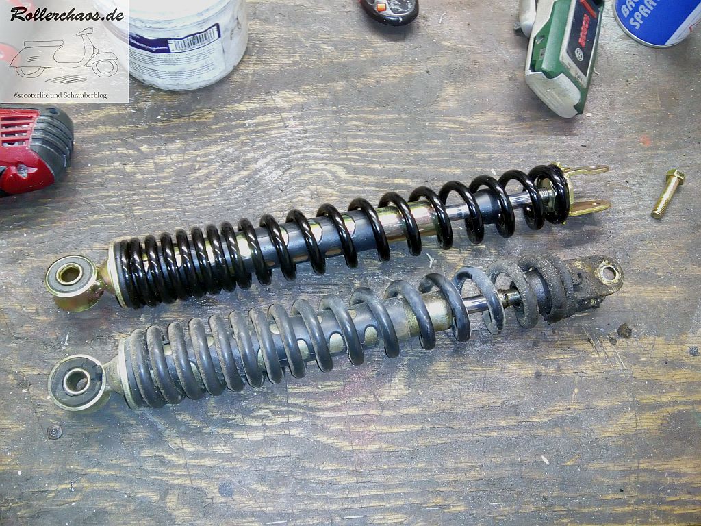 Der Vergleich mit dem Altteil ist hier mal wieder sehenswert. Sonderlich viel Öl kann im alten Federbein nicht mehr drin gewesen sein.