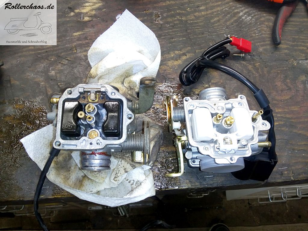Allerdings bekam der Roller im Zuge der heutigen Schrauberaktion auch noch einen neuen Vergaser. Das Altteil zu überholen wäre kaum billiger gewesen.
