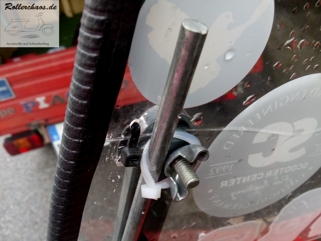 Das Fahrverhalten des Rollers sollte so wieder spürbar besser sein. Anschließend standen noch ein paar kleine Detailarbeiten auf dem Programm. Der Roller hat eine neue Tachowelle und frische Bremsflüssigkeit bekommen, zudem das neue Rücklicht. Somit war er dann für eine Probefahrt bereit.