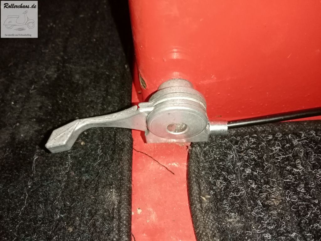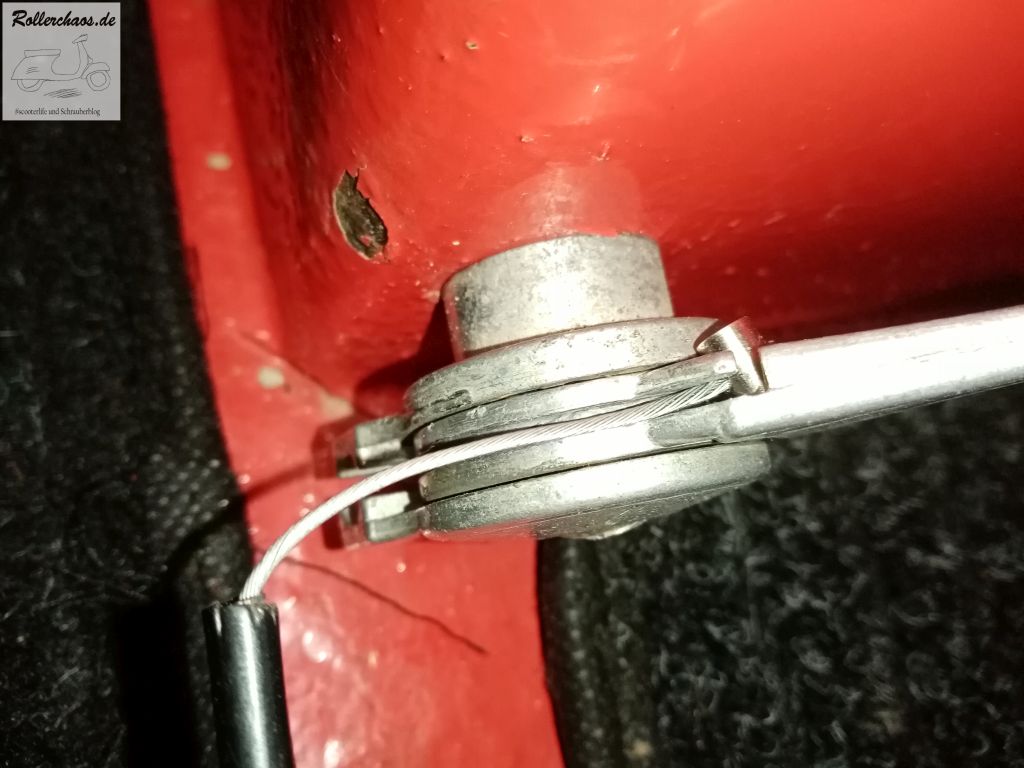 Unter anderem war der Chokezug defekt. Michael hatte diesen noch getauscht, doch der neue Zug (aus der Ape 50) wollte einfach nicht im Chokehebel des Sulky halten. Grund dafür war einfach, dass die Zughülle nicht ausreichend vorgespannt war.