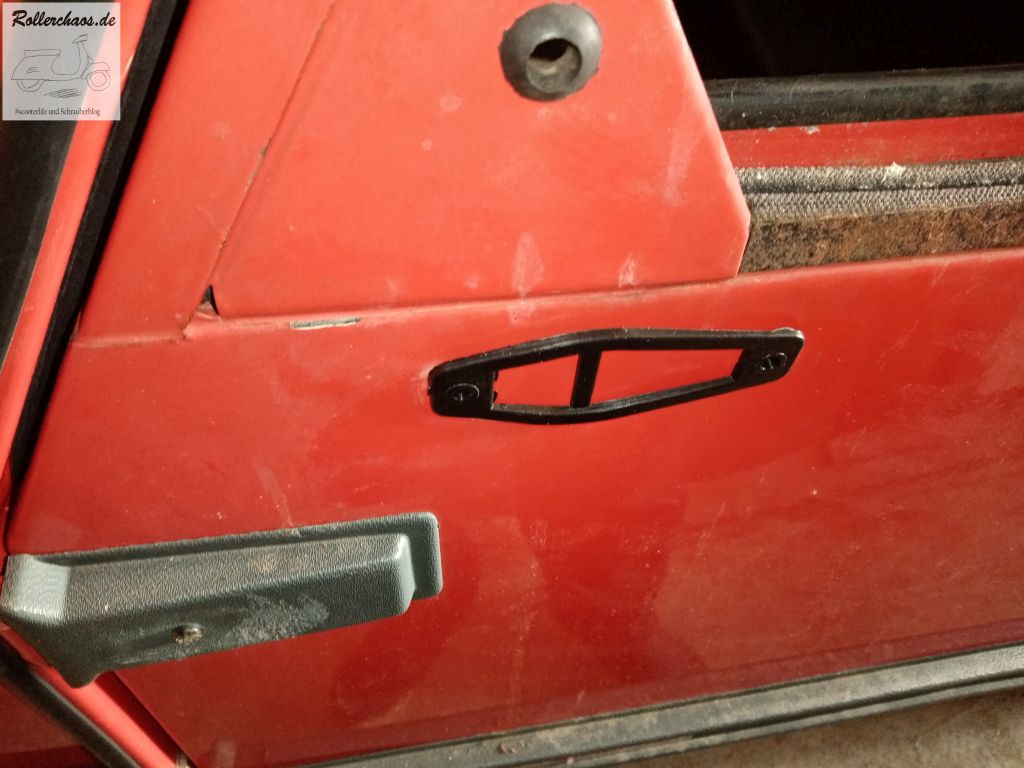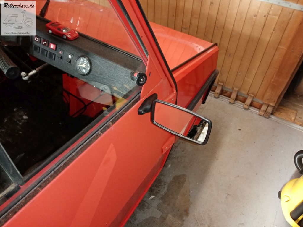 Anschließend bekam der Sulky noch seine neuen Außenspiegel, Teile vom Lada Schiguli, die exakt in die originalen Anschraubpunkte passen.