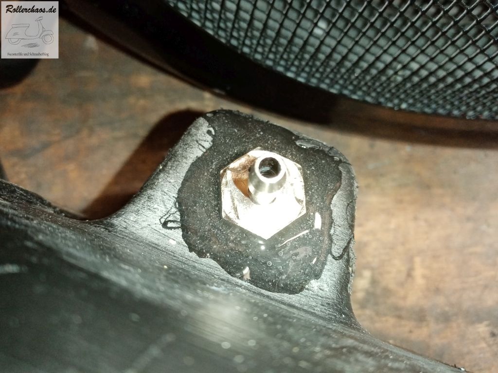 Normalerweise würde das schon reichen, denn dieser Anschluss ist dicht und benutzbar, aber um absolut sicher zu gehen, habe ich ihn zusätzlich noch mit Epoxydharz eingeklebt.