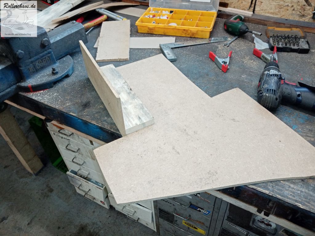 In seinem "neuen Leben" soll der Sulky nämlich auch als Rollstuhltransporter herhalten. Eine Rolle bei der es nicht wirklich optimal ist, dass der Treibstofftank ungeschützt im Kofferraum steht. Ursprünglich sollte hier einfach nur ein Stück Sperrholz als Tankschutz dienen, aber das erschien mir dann doch etwas arg krude.
