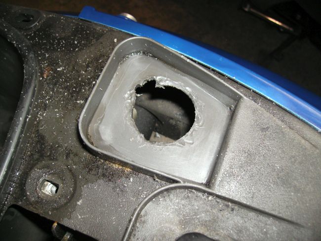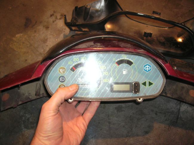 Das Problem ist aber, wie bereits erwartet, die Tachoverkleidung. Diese passt auch mit einer groben Modifikation nicht, denn sie ist schmaler als das SKR-Teil.