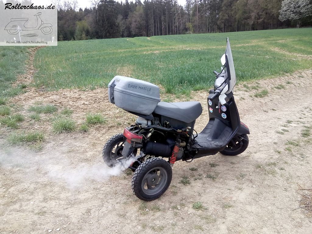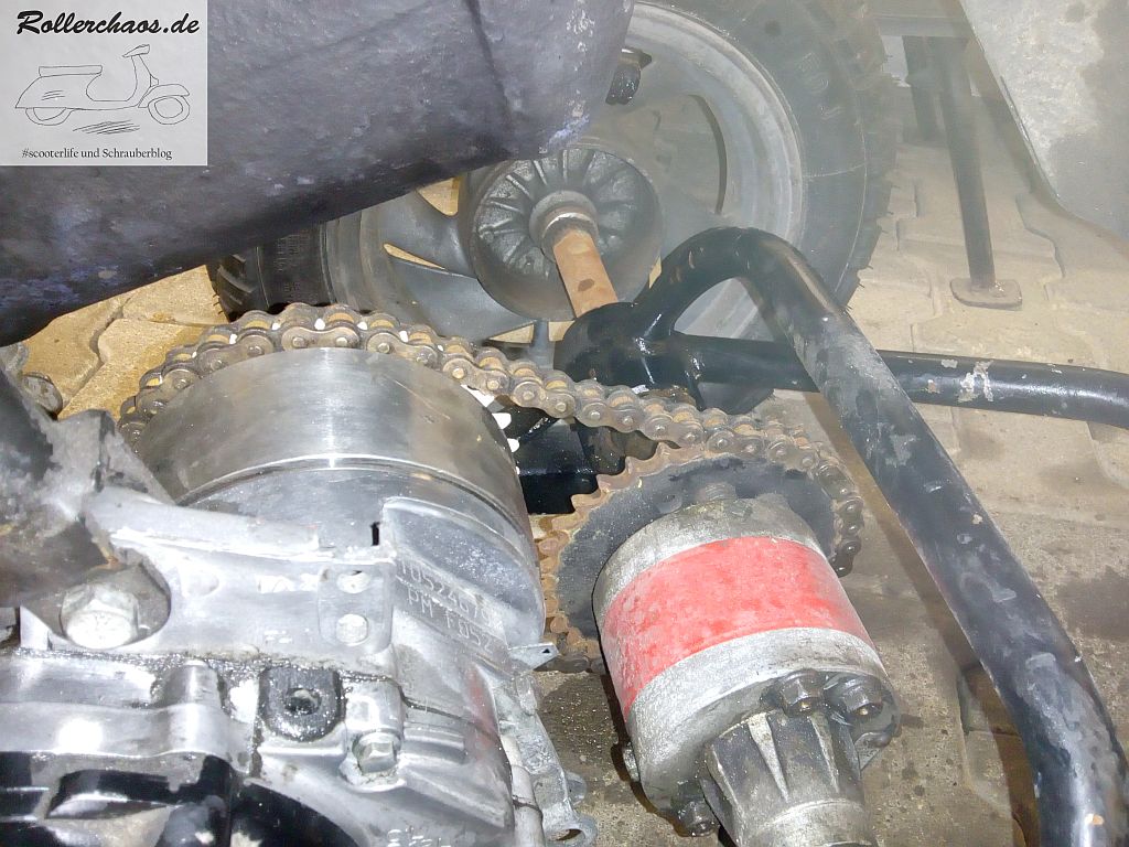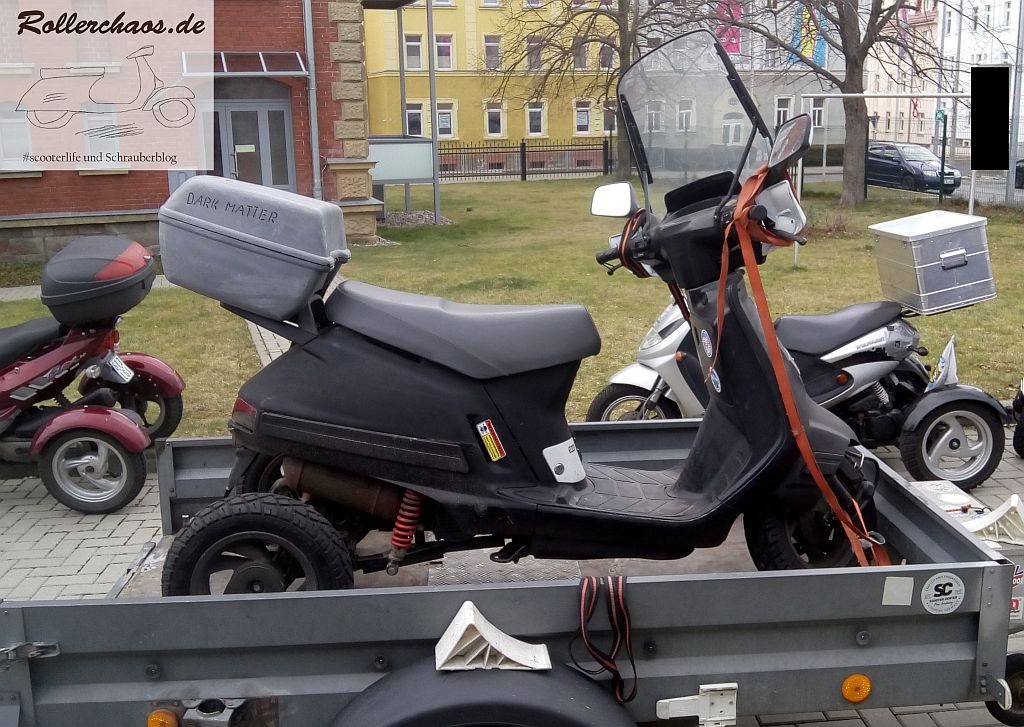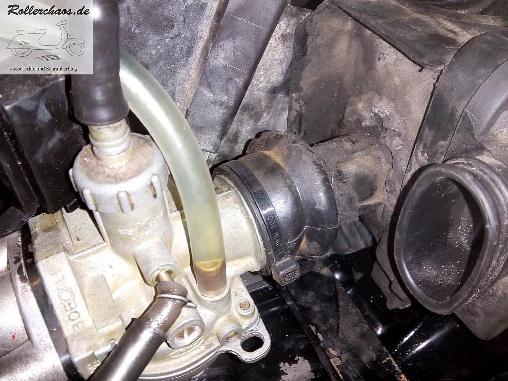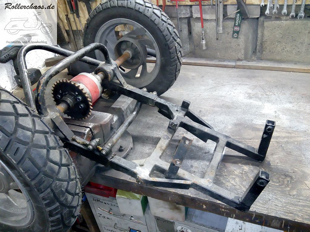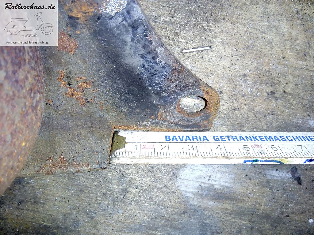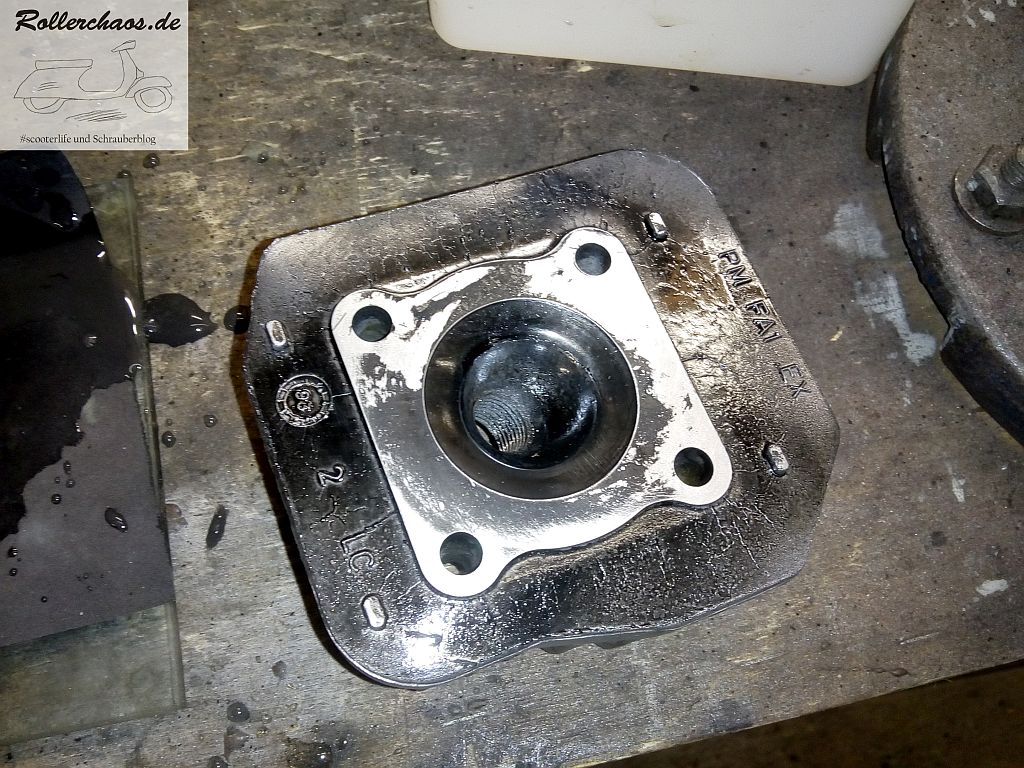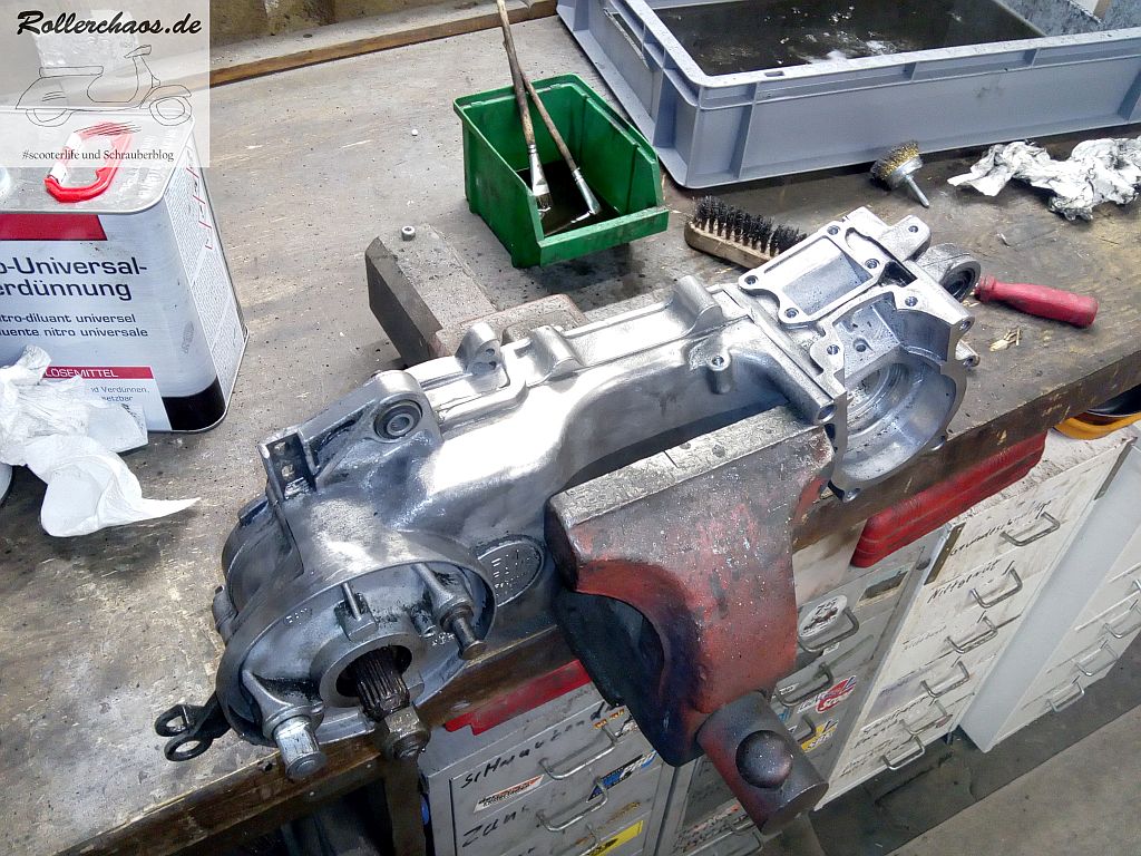 Wenn dann, wie bei diesem Exemplar, durch Werkstattpfusch in der Vergangenheit, sämtliche Schrauben überdehnt und vernudelt sind, dann ist es eine ziemliche Quälerei, bis der Roller vom Fahrschemel getrennt ist.
