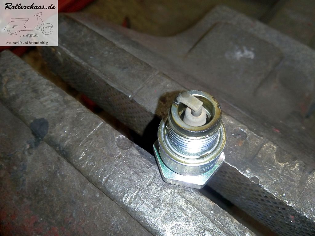 Das Zündkerzenbild nach der, eigentlich zu kurzen, Testfahrt auf dem Weg in der der Werkstatt ist jedenfalls gut. Übertrieben Öl verbrennt er jedenfalls nicht.