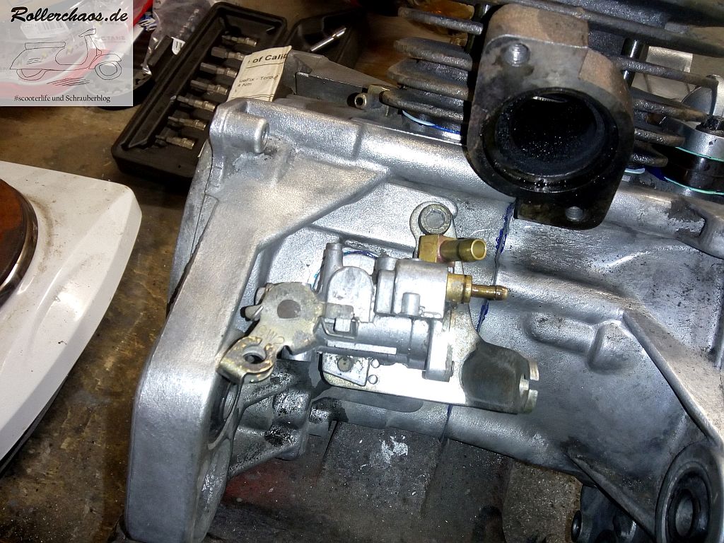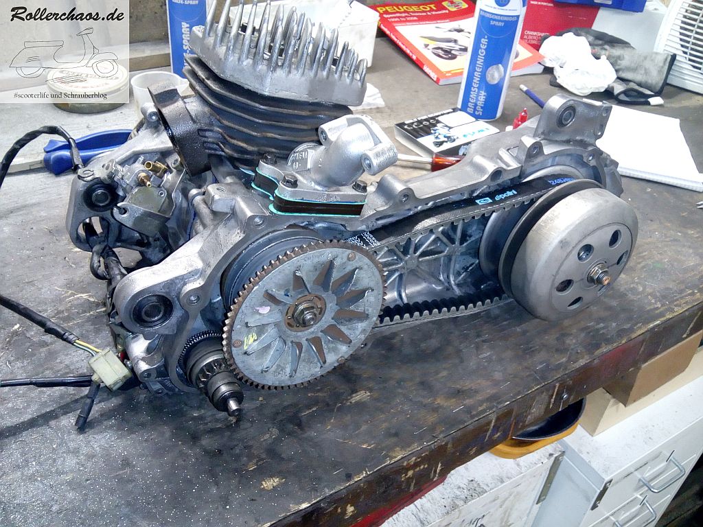 Mit Zylinder und Ansaugvorrichtung sind nun alle Teile wieder am Motor. Zeit für die Nebenaggregate