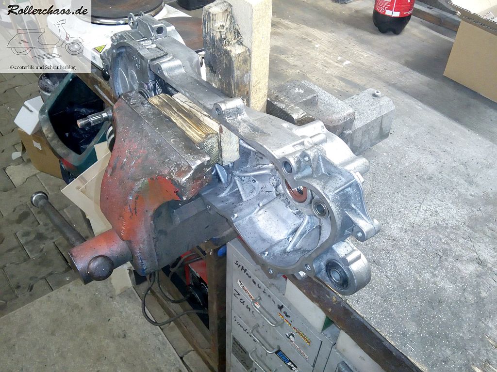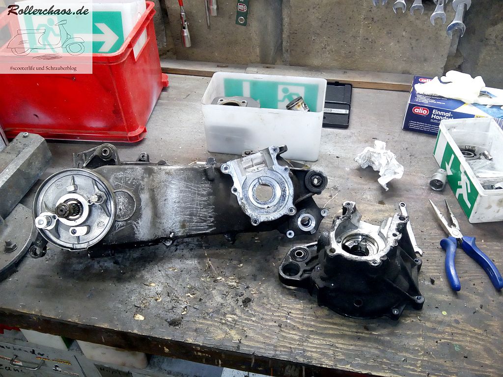 Wobei weniger die beiden Motorhälfte aufhalten, sondern die vielen Kleinteile und Motorinnereien.