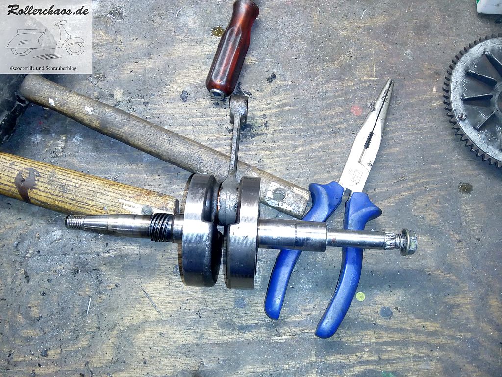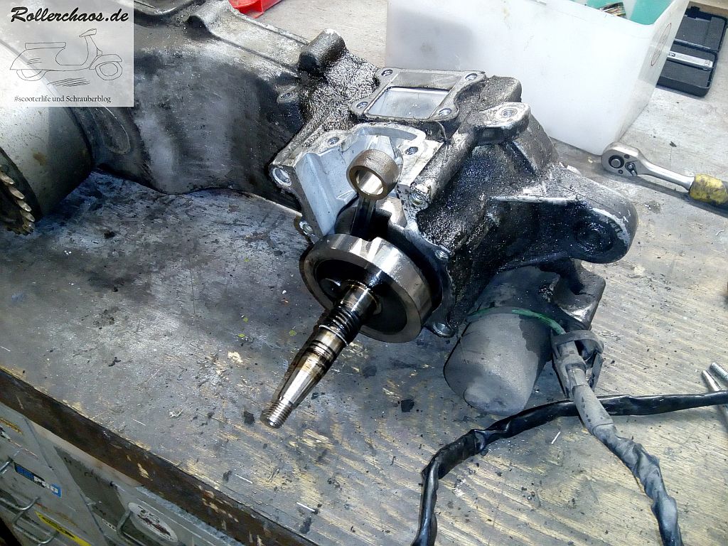 Die Kurbelwelle fiel einfach aus den Lagern, was ebenfalls nicht unbedingt für guten Zustand spricht. Die Welle selbst hat immer hin kein Spiel und scheint nicht verzogen zu sein.