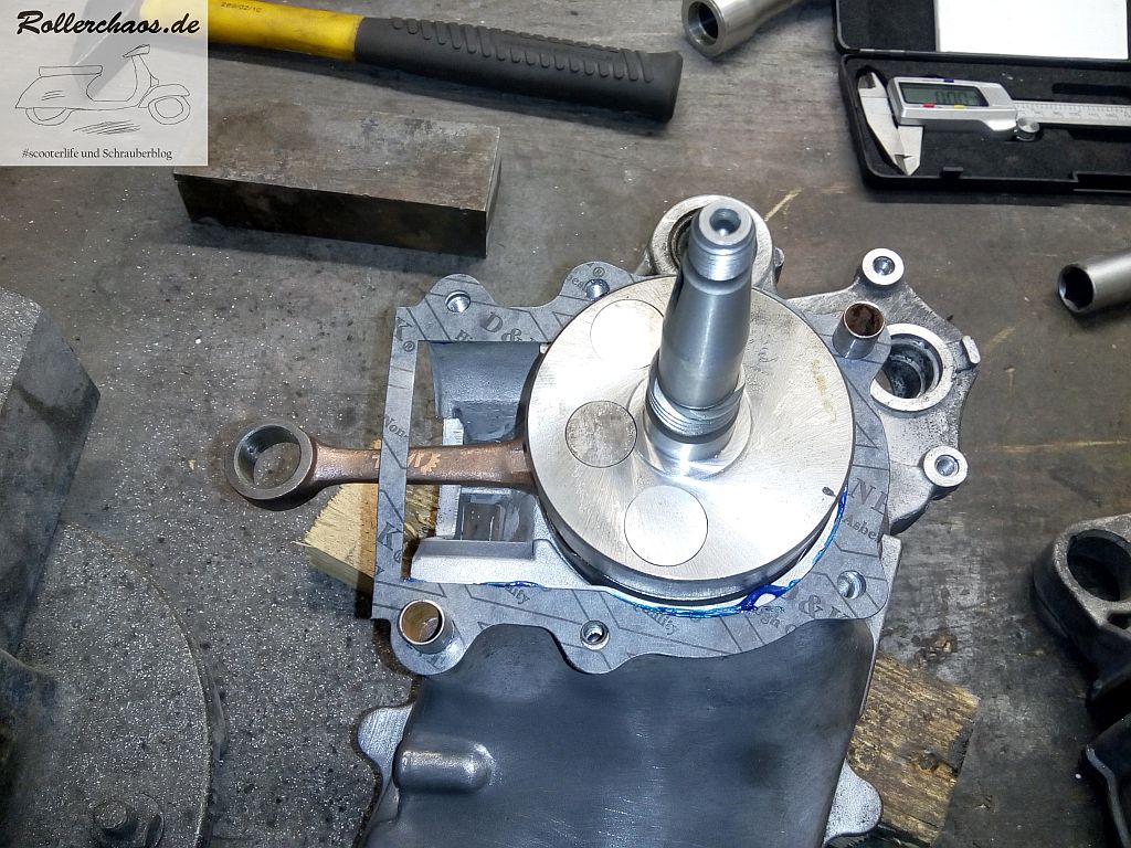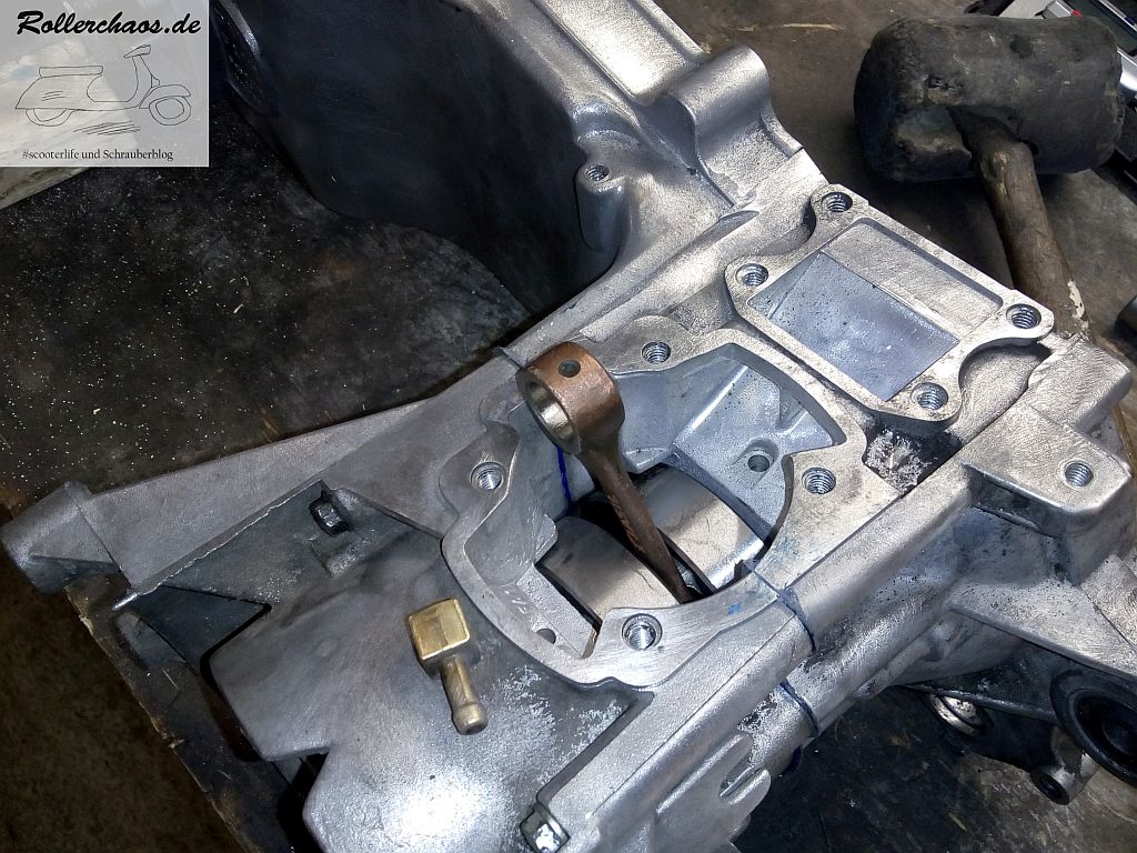 Die Kurbelwelle sitzt auf diese Weise sofort perfekt im Lager und die kleine Hälfte kann vorbereitet werden.
