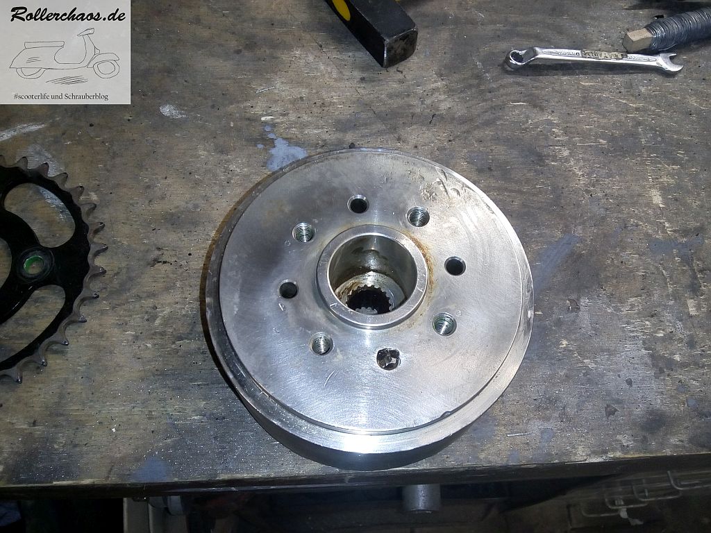 Dies zwar zum Glück möglich, denn die Bremstrommel ist ein im Grund unersetzbares Spezialteil.