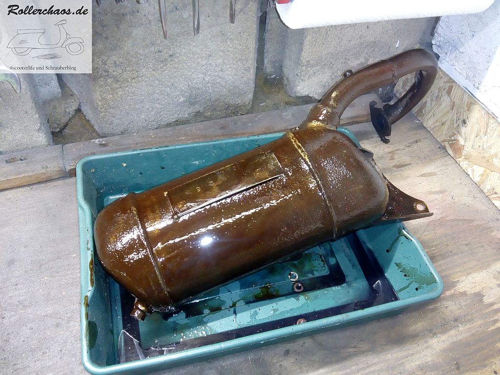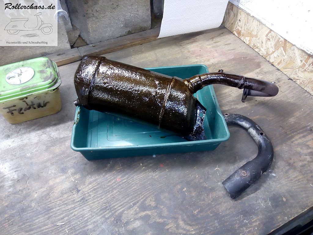 Darum ging es dafür dann auch in die Wanne mit dem Fertan. Zwar brauche ich nur einen Auspuff für das Projekt, aber wenn ich schon dabei bin, dann schadet es nicht, eine weitere Ersatzanlage rostsicher zu machen.