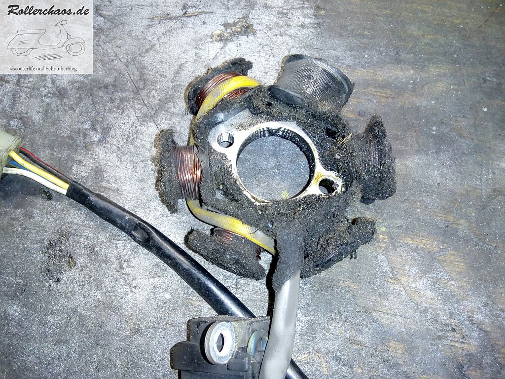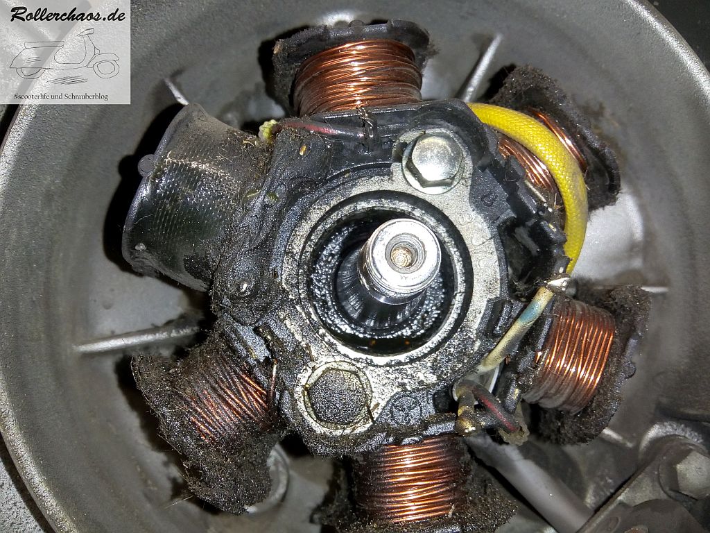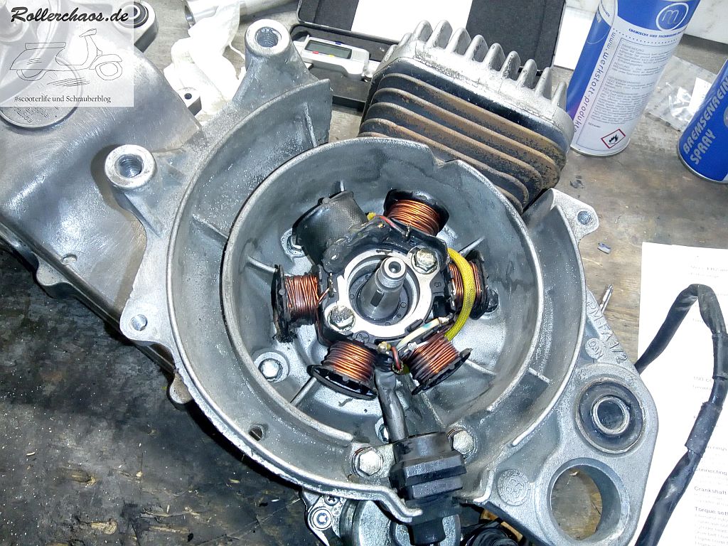 Der gereinigte Zündanker kam natürlich auch wieder rein, genau wie das Polrad.