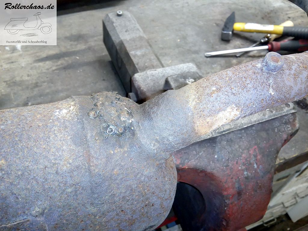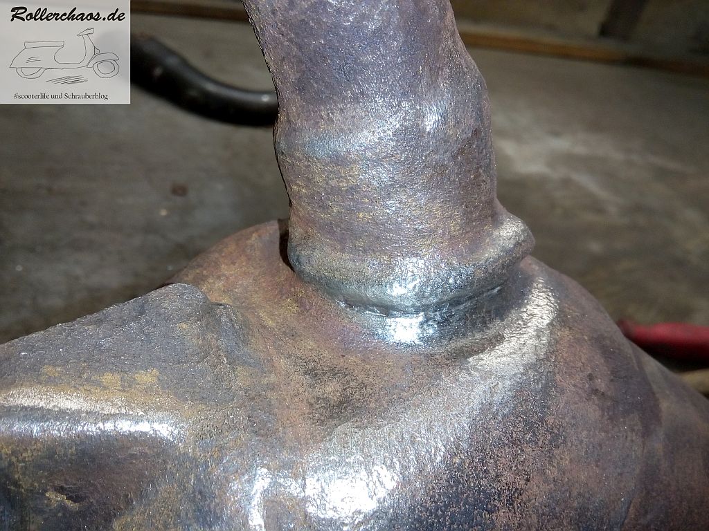 Von der groben Schweißnaht abgesehen, ist dieses Teil eigentlich ganz okay. Zumindest förderte die Drahtbürste keine Löcher zu Tage.