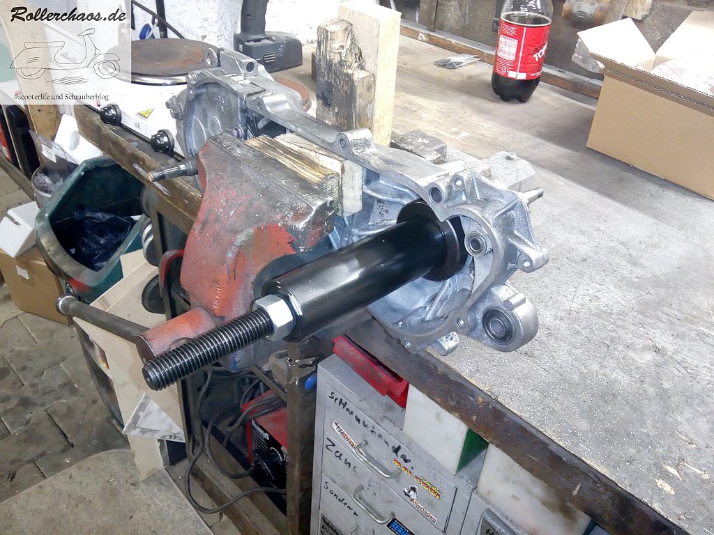 Die kleine Hälfte ließ sich dann, auch dank der Einziehvorrichtung, völlig problemlos mit der großen verbinden. Die Passungen dieses Motors sind ziemlich gut, außerdem helfen natürlich gute Ersatzteile.