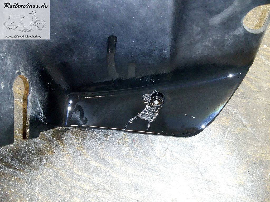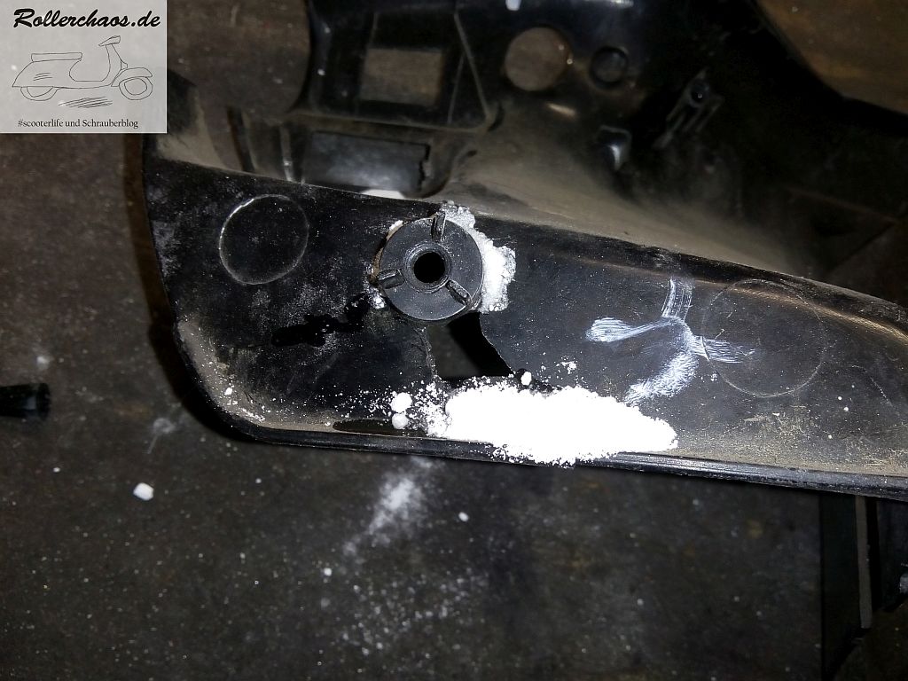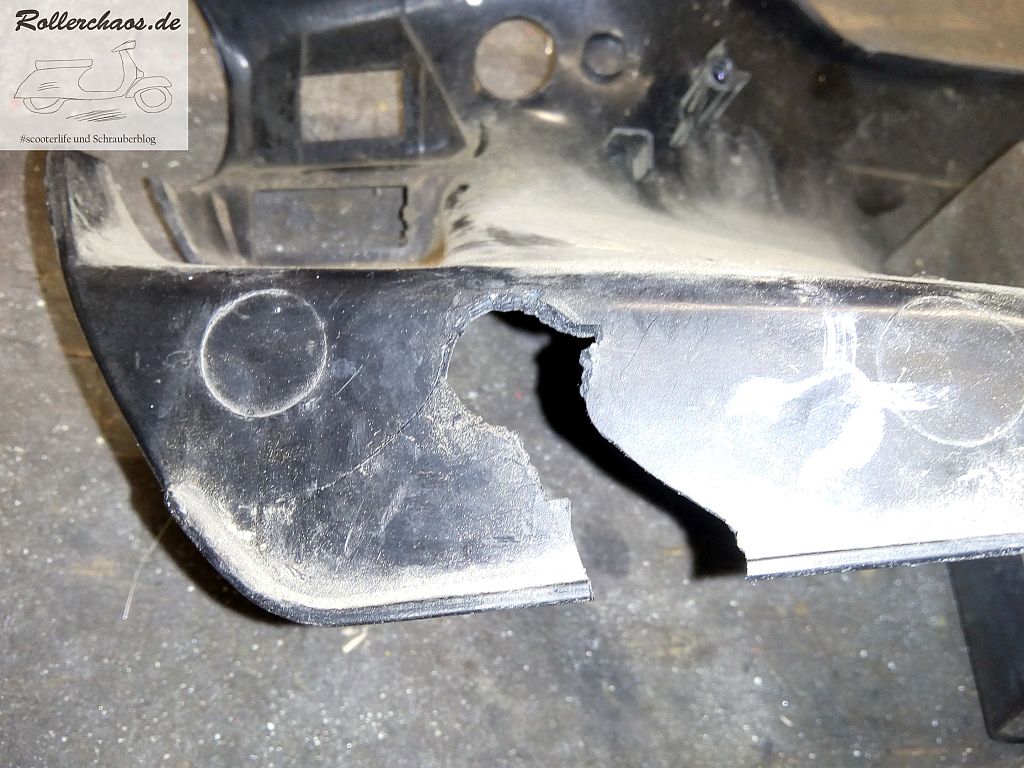Einen kleinen Ausbruch an der Lenkerverkleidung habe ich bei der Gelegenheit auch noch entdeckt. Keine Ahnung wie und wann das passiert ist, aber es war einfach zu beheben.