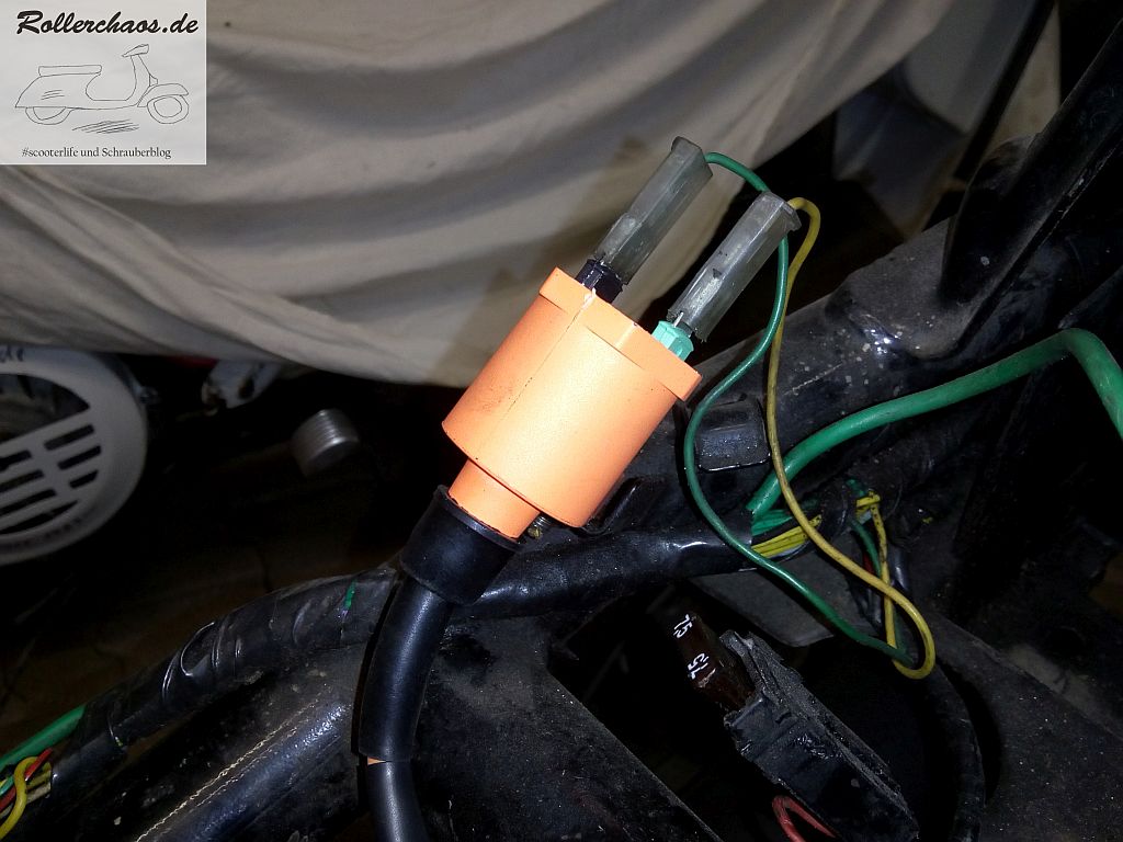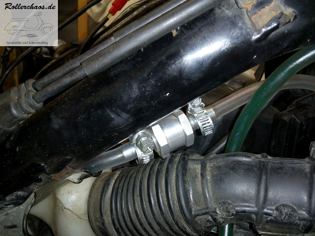 Eine moderne Hochleistungsspule als Ersatz für das altersschwache Originalteil und ein neuer Regler sind ja schnell eingebaut. Ebenso das bisher fehlende Rückschlagventil in der Benzinleitung.
