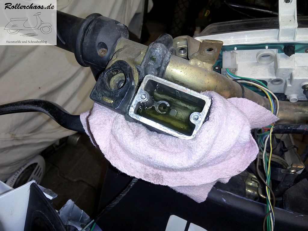 Wenn der Lenker schon offen ist, dann gibt es auch gleich noch frische Bremsflüssigkeit.