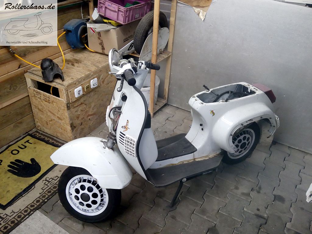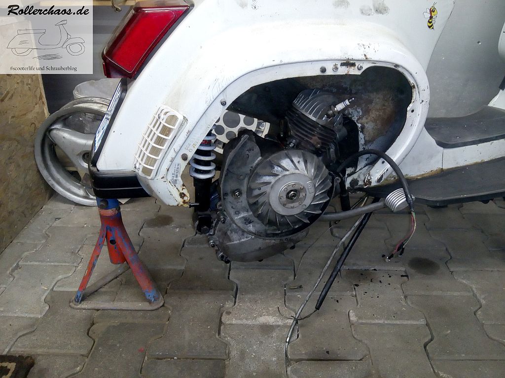 Ein Bild meiner PK mit Motor gab es zuletzt vor dem Umzug in die neue Werkstatt. Aber was solls, ich freue mich, dass der Roller endlich wieder zusammen wächst.
