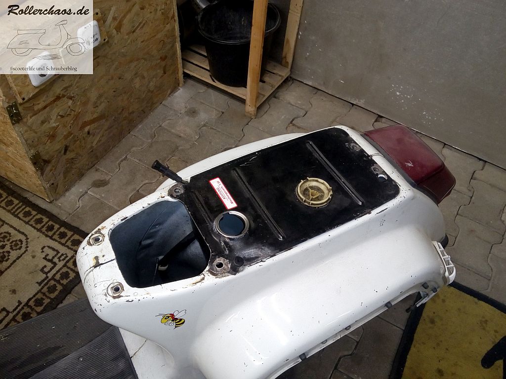 Anschließend zog auch der Tank provisorisch wieder in den Roller ein.