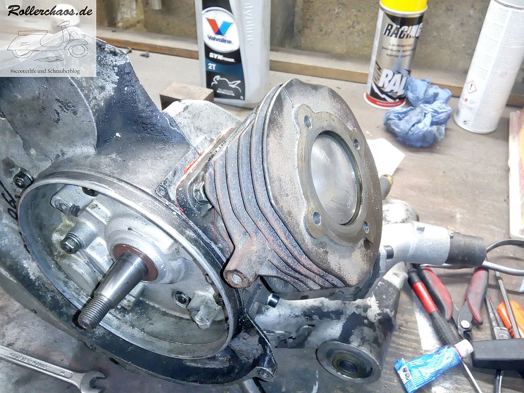 Natürlich sind, wie das bei solchen Dingen eben ist, einige Kleinteile in der Zwischenzeit verschollen. Aber immerhin war alles da, was ich brauchte um den Motor in den Roller hängen zu können.