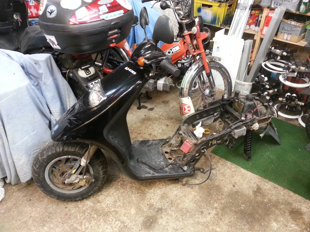 Jedenfalls war ich heute aus anderem Grund bei ihm und hab ihn gefragt, was der TPH-Motor macht. Die Antwort: "Welcher Motor?" -> "Piaggio AC mit abgebrochenen Stehbolzen?" -> "ach der, ja der liegt im Büro auf der Fensterbank hab ich vergessen ..."