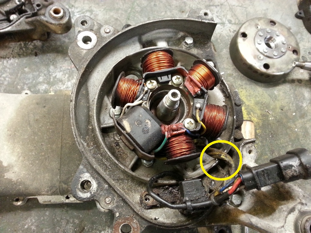 Typisch für einen TPH dieser Zeit ist der Roller rostig, jedoch nicht rettungslos verfault. Ganz im Gegenteil, er ist sogar recht ordentlich beieinander. Zudem leidet er an einem weiteren Problem, das bei Piaggios aus jenen Jahren relativ häufig vorkommen: Die Hauptlager der Kurbelwelle sind hinüber. Entsprechend klingt der Roller wie ein mit Kieselsteinen gefüllter Mixer. Dennoch fährt er gut und stark, eine Reparatur ist also durchaus lohnend. Abgesehen davon war der Roller schon fast unverschämt billig. Ich habe kaum mehr bezahlt als der Scheinwerfer auf dem Gebrauchtmarkt wert ist. Man könnte also sagen, ich hätte den Scheinwerfer gekauft und den Roller als Dreingabe bekommen.